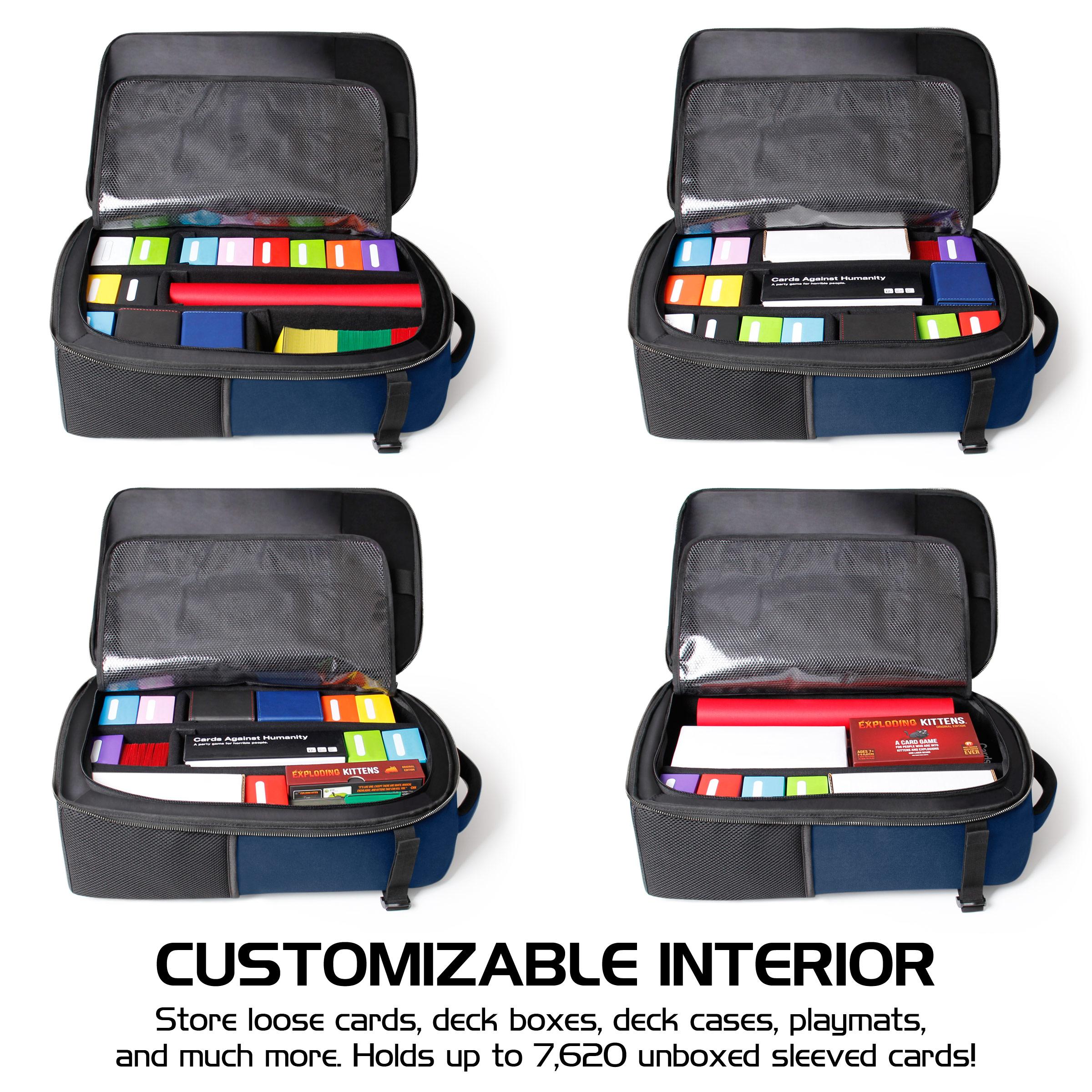 Bring your best to your next tournament or game night! The ENHANCE Card Storage backpack features a large spacious interior designed to store up to 7,600 loose sleeved cards and includes exterior pockets with playmat straps designed to hold MTG playmats used in tournaments and game nights at your local shop. Load up the backpack, and head out to your next game fully loaded for a great time.