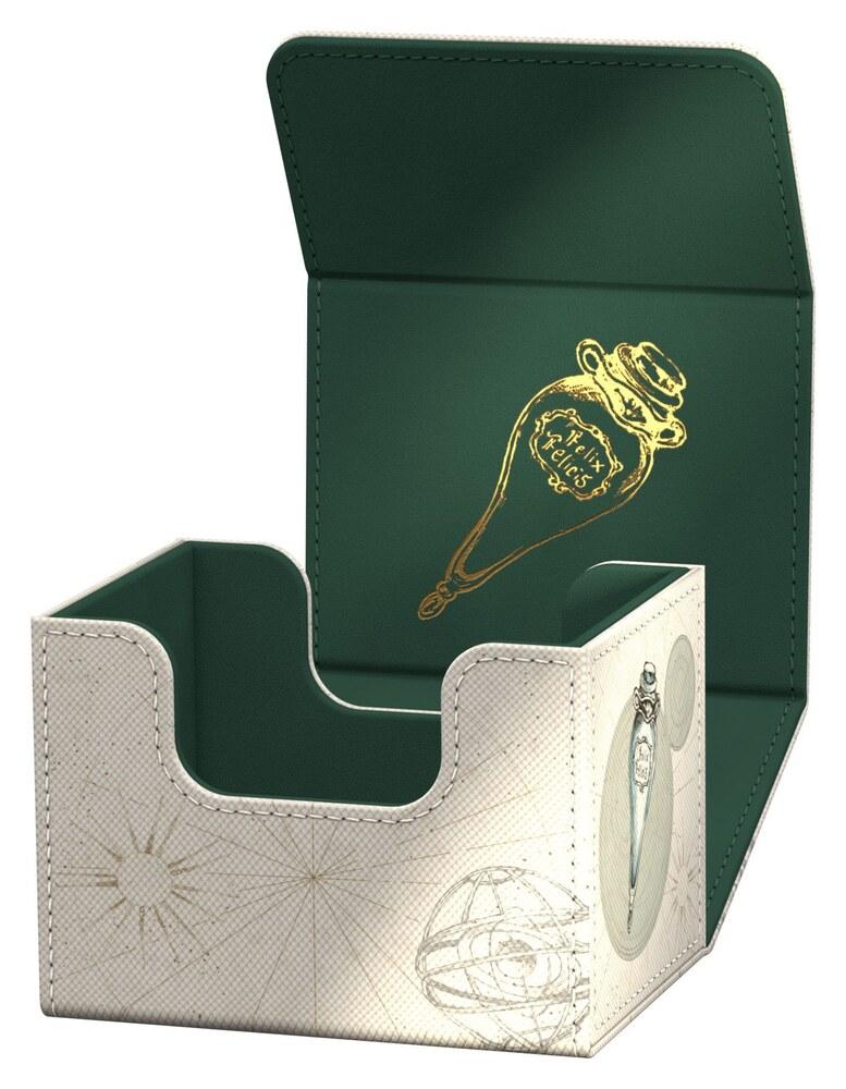 Experience the magic of Hogwarts up close with Ultimate Guard's Harry Potter Sidewinder 100+ Xenoskin. The full-color printed deck boxes made of durable Xenoskin material offer space for up to 100 (double-sleeved) or 120 (single-sleeved) cards. With their high-quality microfiber interior and strong magnetic closure, they are the perfect storage place for your decks and trading cards.