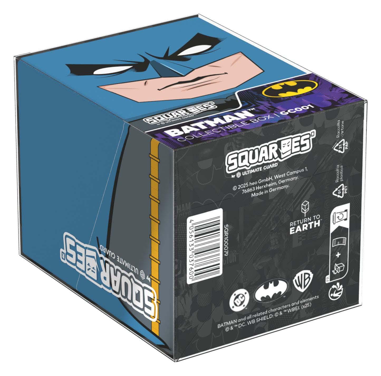 Sammelbare Box zur Aufbewahrung von TCG-Decks, Tabletop-Zubehör und/oder Sammlerstücken. Der Batman Squaroe aus der Batman: Gotham City-Edition bietet als Deck-Box benutzt Platz für bis zu 100 Spielkarten in doppelter Schutzhülle. Squaroes werden aus 78% erneuerbaren Rohstoffen hergestellt und passen perfekt in das separat erhältliche Collectors Case.