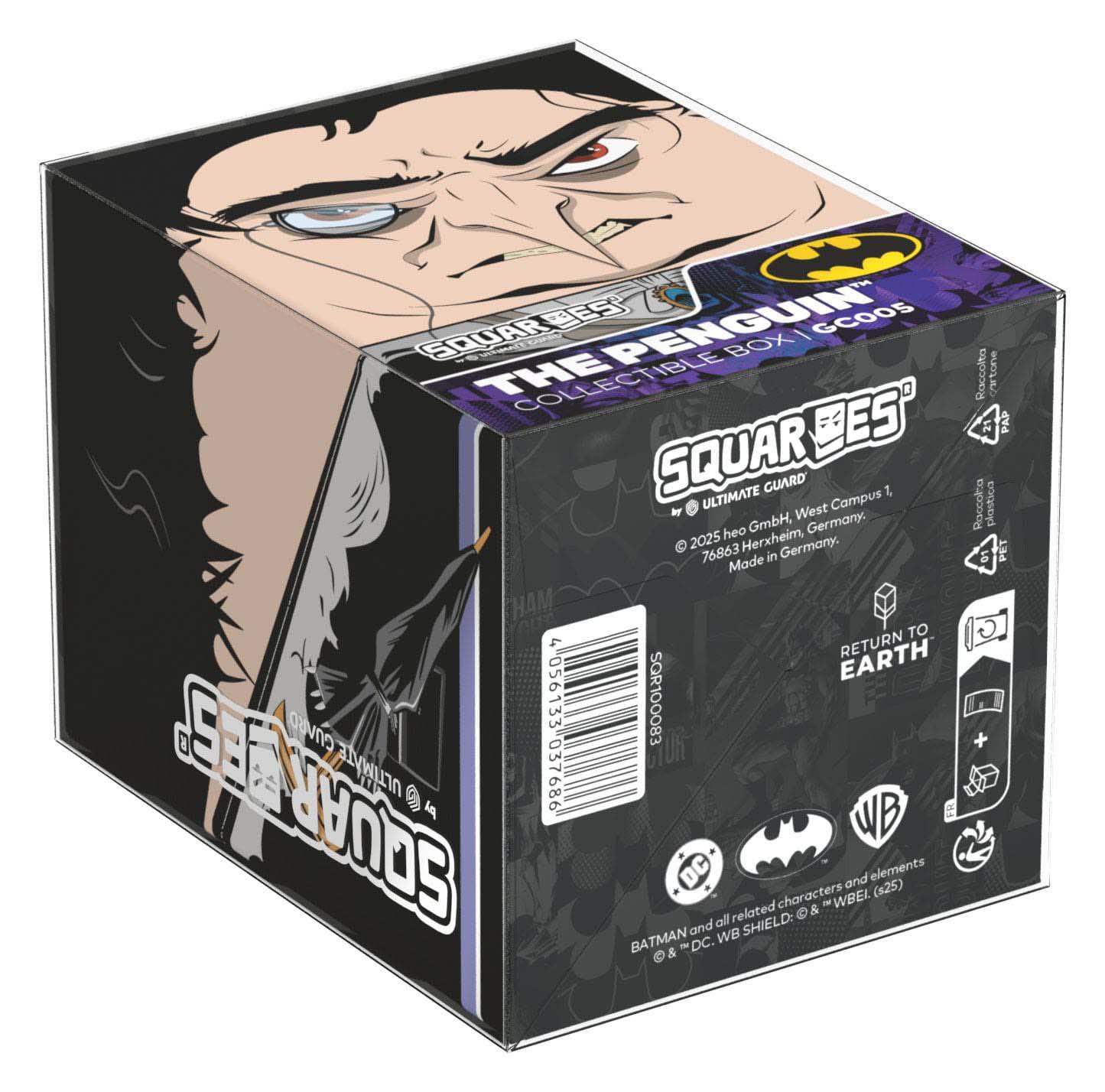 Sammelbare Box zur Aufbewahrung von TCG-Decks, Tabletop-Zubehör und/oder Sammlerstücken. Der The Penguin Squaroe aus der Batman: Gotham City-Edition bietet als Deck-Box benutzt Platz für bis zu 100 Spielkarten in doppelter Schutzhülle. Squaroes werden aus 78% erneuerbaren Rohstoffen hergestellt und passen perfekt in das separat erhältliche Collectors Case.