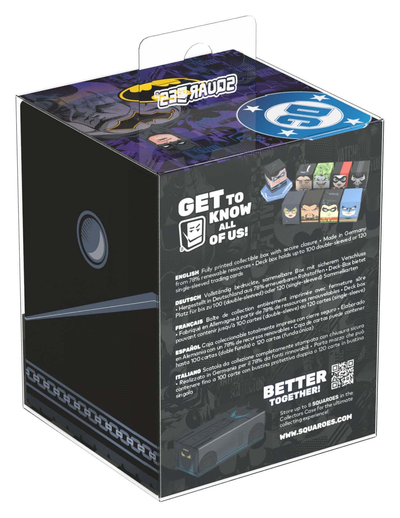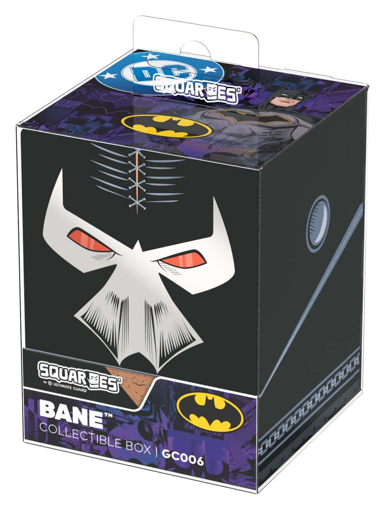 Sammelbare Box zur Aufbewahrung von TCG-Decks, Tabletop-Zubehör und/oder Sammlerstücken. Der Bane Squaroe aus der Batman: Gotham City-Edition bietet als Deck-Box benutzt Platz für bis zu 100 Spielkarten in doppelter Schutzhülle. Squaroes werden aus 78% erneuerbaren Rohstoffen hergestellt und passen perfekt in das separat erhältliche Collectors Case.