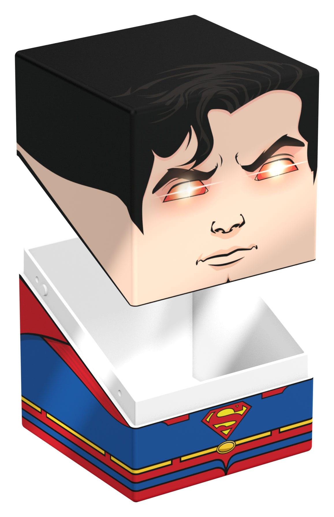 Sammelbare Box zur Aufbewahrung von TCG-Decks, Tabletop-Zubehör und/oder Sammlerstücken. Der Superman Squaroe aus der DC Justice League™-Edition bietet als Deck-Box benutzt Platz für bis zu 100 Spielkarten in doppelter Schutzhülle. Squaroes werden aus 78% erneuerbaren Rohstoffen hergestellt.