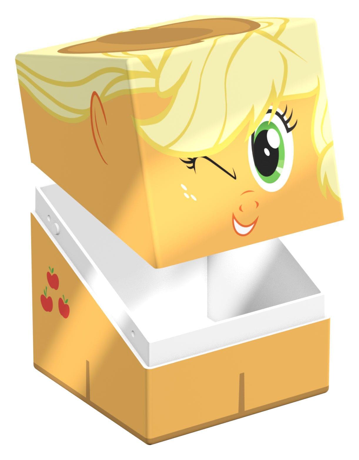 Sammelbare Box zur Aufbewahrung von TCG-Decks, Tabletop-Zubehör und/oder Sammlerstücken. Der Apple Jack Squaroe aus der My Little Pony "Friendship is Magic"-Edition bietet als Deck-Box benutzt Platz für bis zu 100 Spielkarten in doppelter Schutzhülle. Squaroes werden aus 78% erneuerbaren Rohstoffen hergestellt.