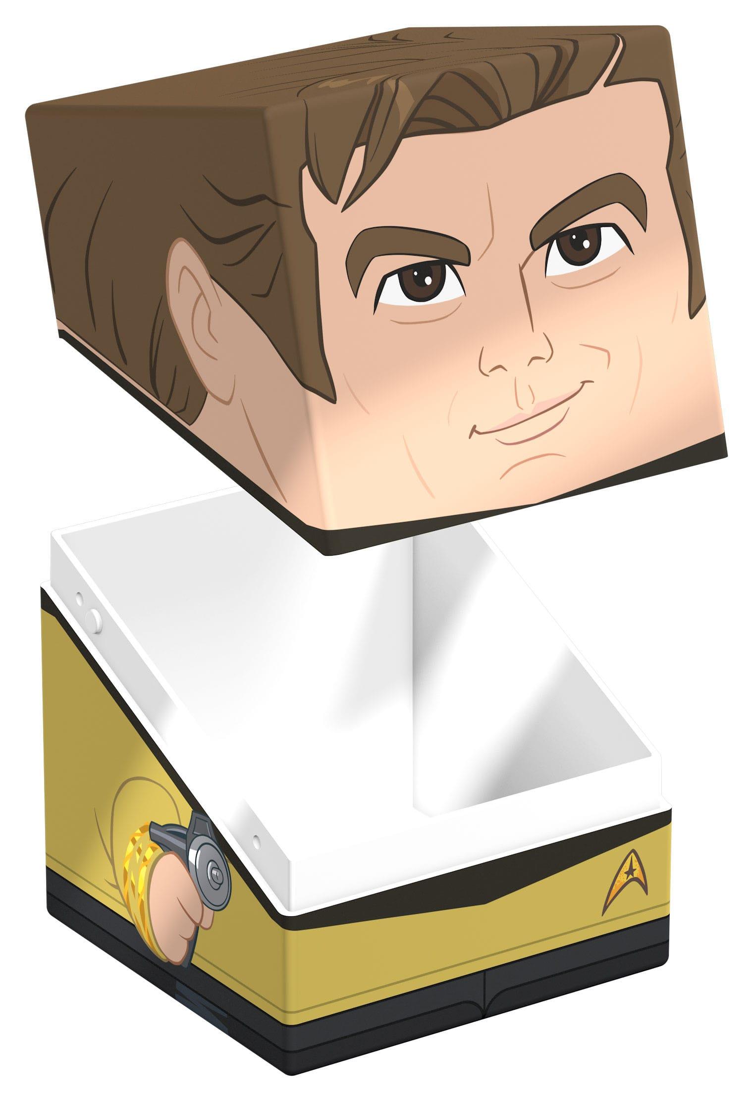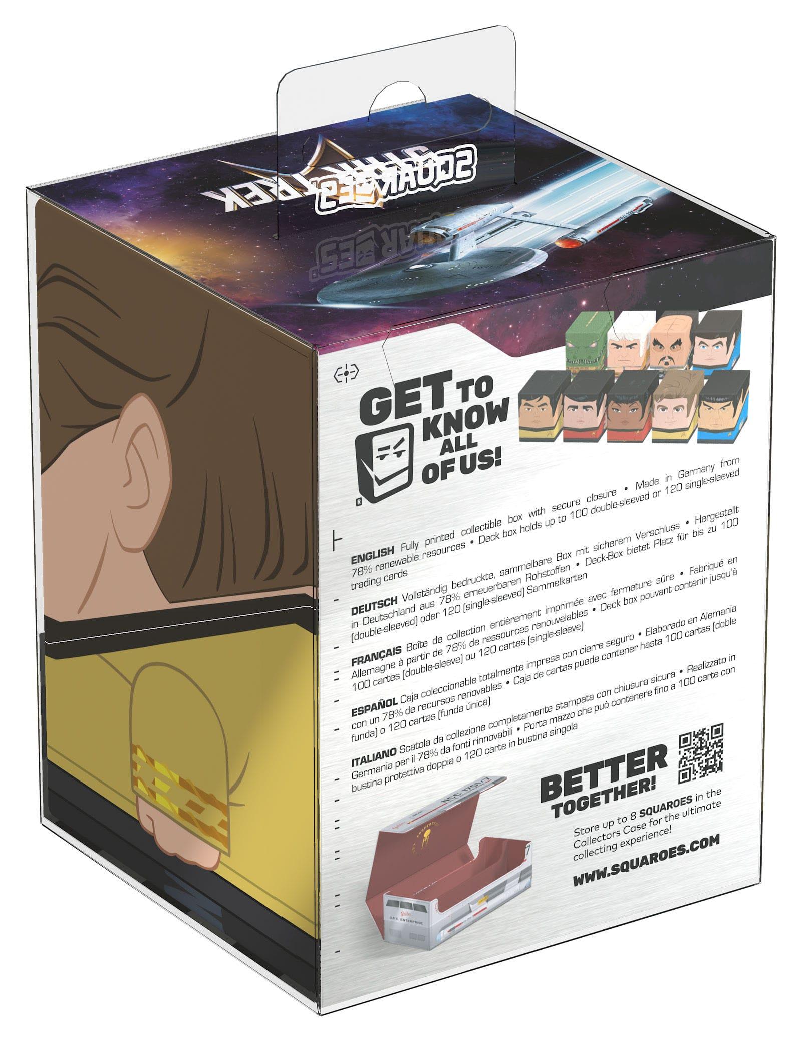 Sammelbare Box zur Aufbewahrung von TCG-Decks, Tabletop-Zubehör und/oder Sammlerstücken. Der Captain Kirk Squaroe aus der Star Trek: The Original Series-Edition bietet als Deck-Box benutzt Platz für bis zu 100 Spielkarten in doppelter Schutzhülle. Squaroes werden aus 78% erneuerbaren Rohstoffen hergestellt und passen perfekt in das separat erhältliche Collectors Case.