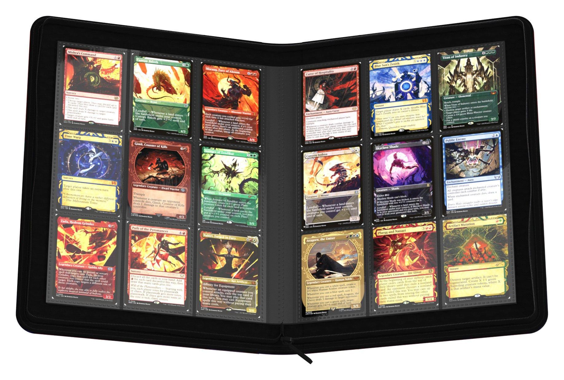 Illustriert von Dominik Mayer, unter anderem einem der beliebtesten Künstler für Magic: The Gathering, sind unsere 2024 Exclusives wahre Kunstwerke. Das Zipfolio 360 bietet 20 integrierte 18-Taschen-Seiten und lässt sich für zusätzliche Sicherheit per Reißverschluss verschließen. Der hochwetige Xenoskin-Einband des Sammelkarten-Albums zeigt eine epische Welt voller Ritter und Drachen.